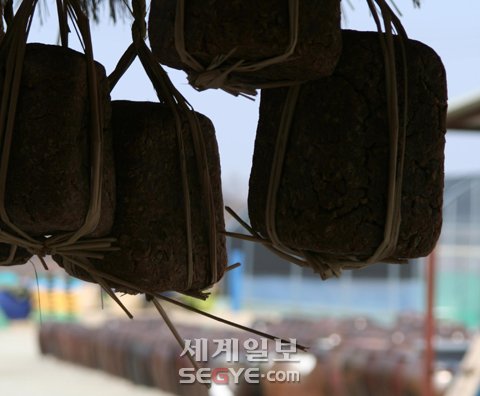 | ◇장단콩 마을의 장독대와 메주. 파주=박창억 기자 |